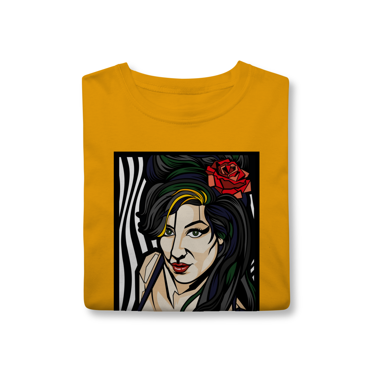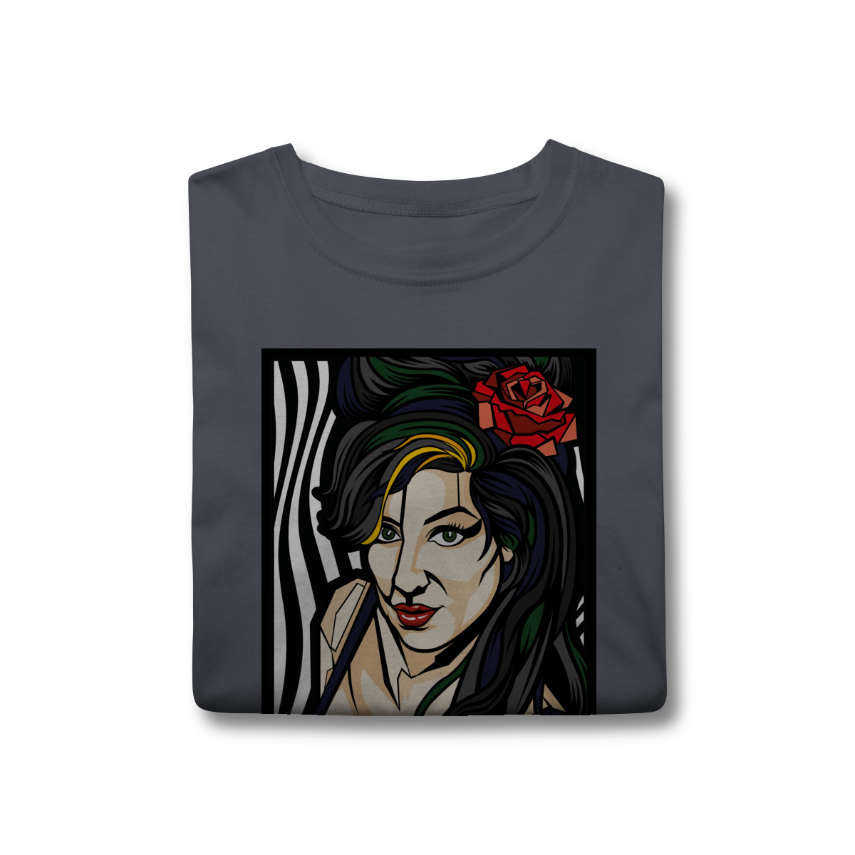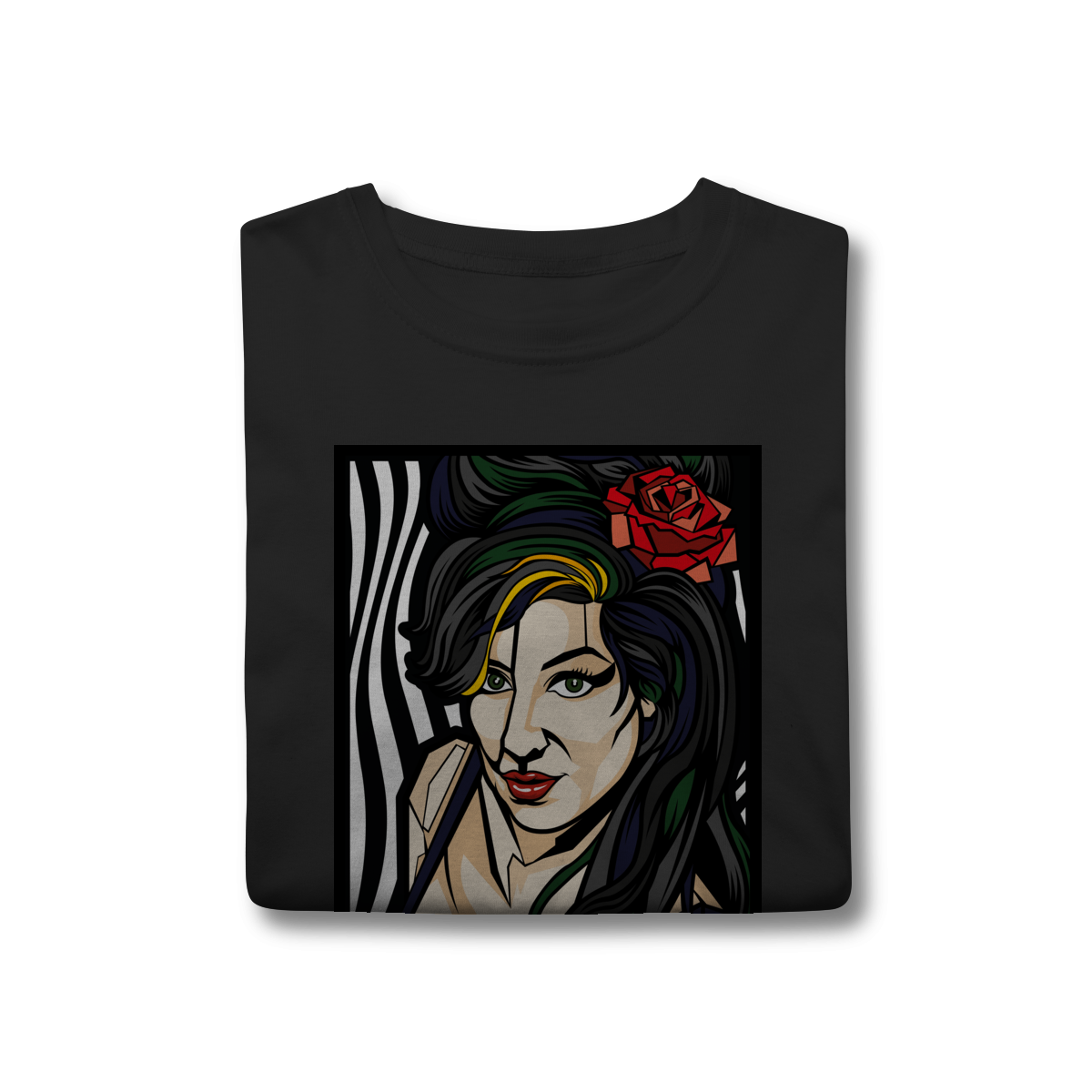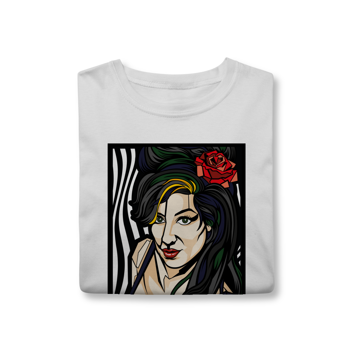 Amy Winehouse, eternizada em arte. Cores intensas e traços autorais que transformam sua força, estilo e música em uma obra que pulsa emoção e atitude.