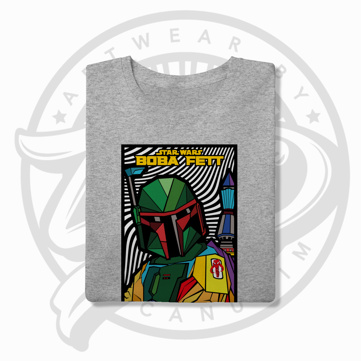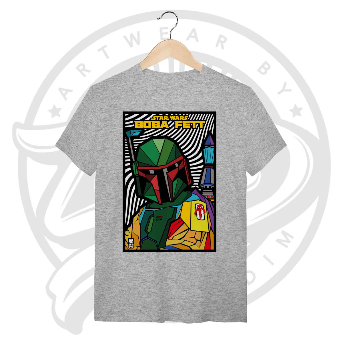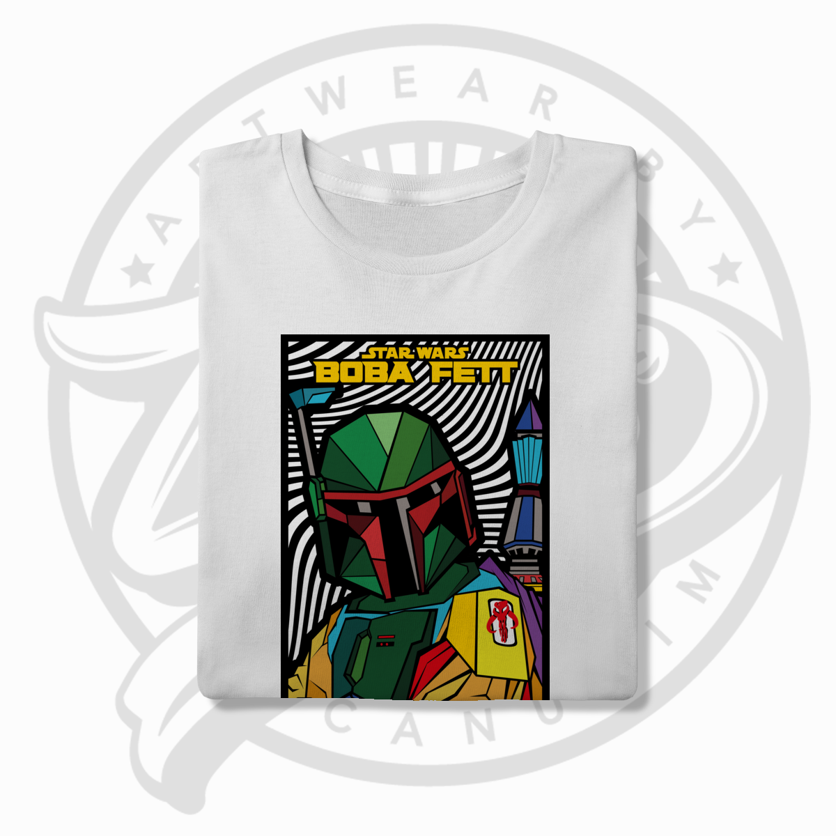 Boba Fett ganha nova dimensão nesta obra autoral que une a força da cultura Star Wars com a ousadia do pop art. Uma peça exclusiva da Canudim.Art para quem é fã, colecionador e apaixonado pelo universo geek.