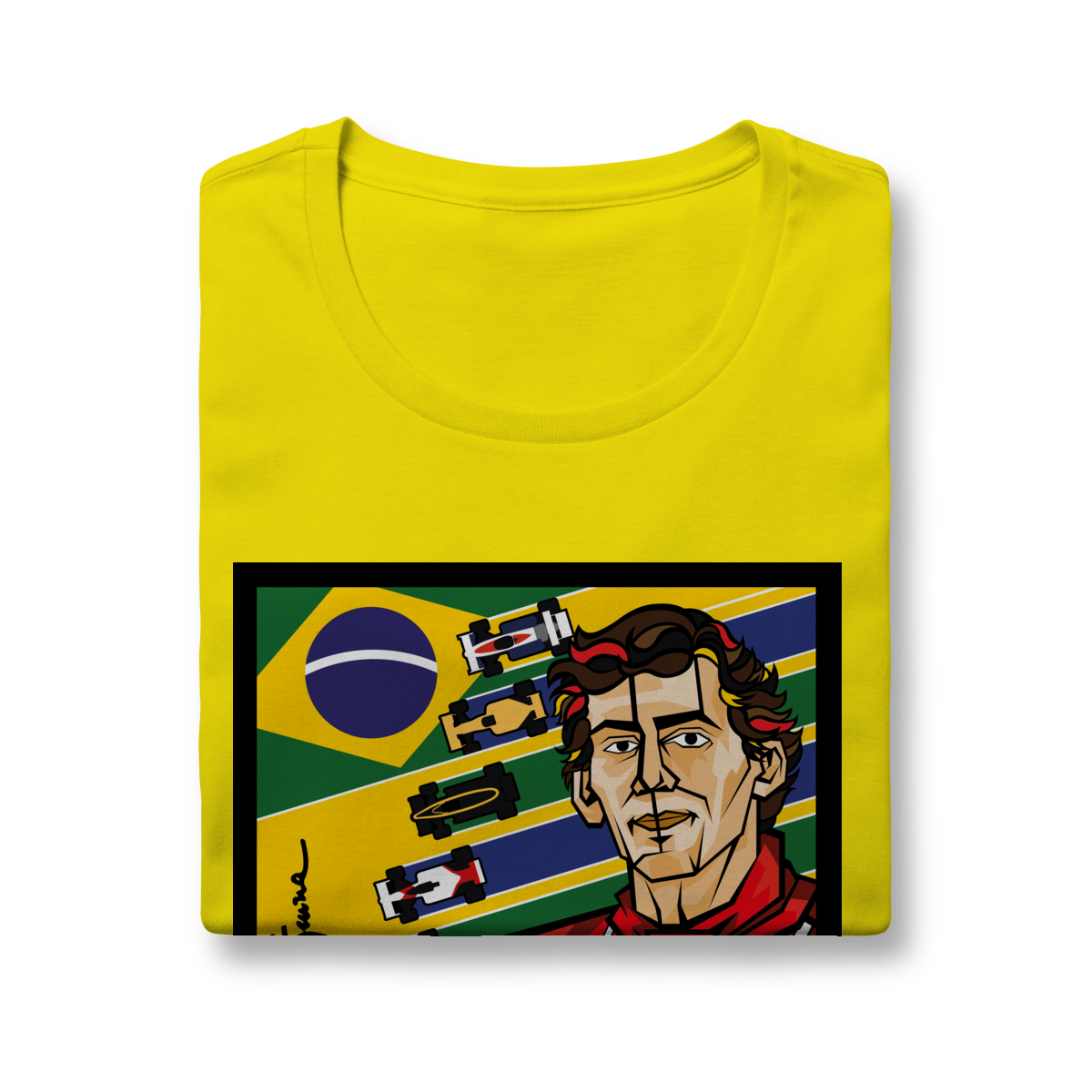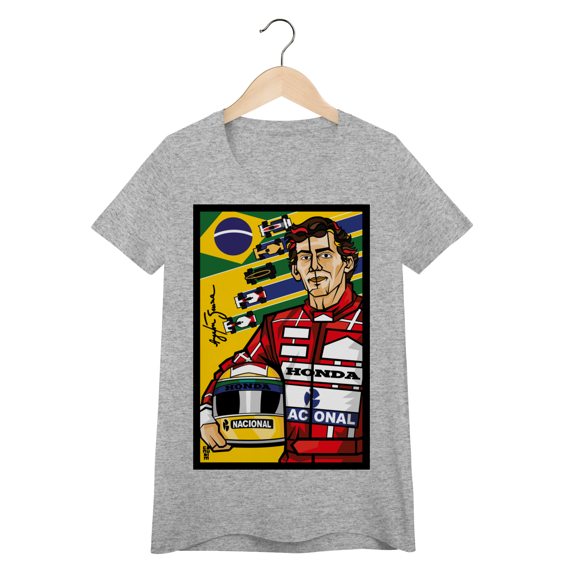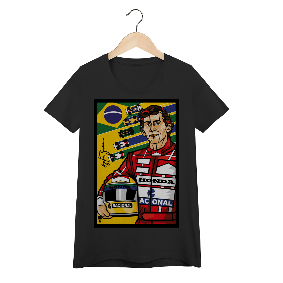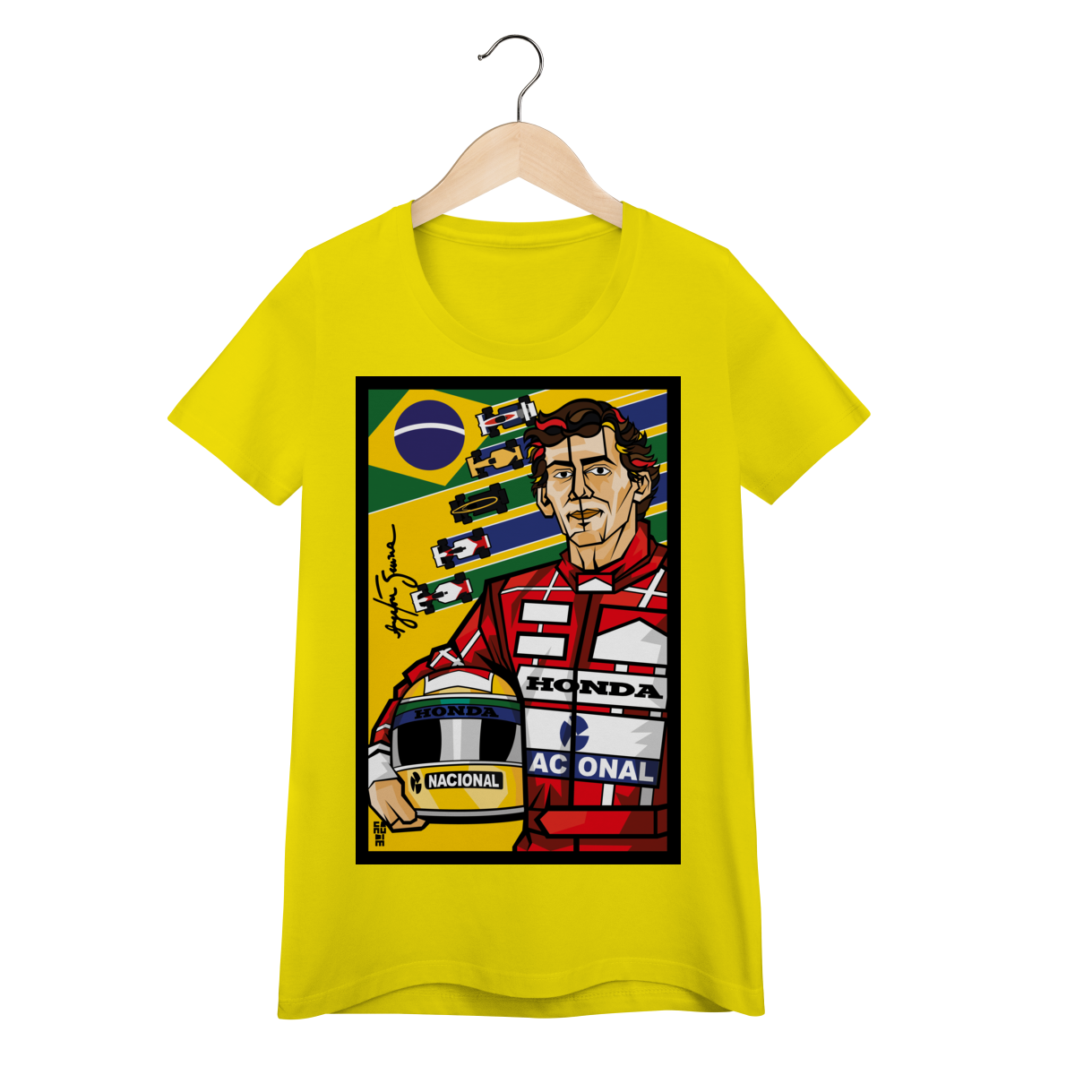Ayrton Senna, ídolo eterno, agora em pop art vibrante. Traços autorais que celebram a velocidade, a emoção e o orgulho brasileiro em uma obra única.